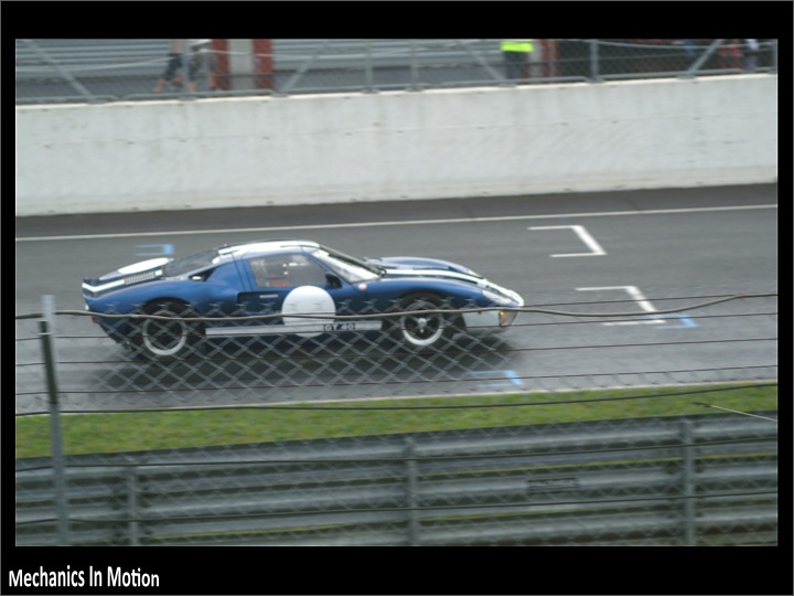 (Une Ford GT 40 pendant une session de baptême sous une pluie légère)