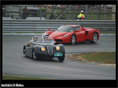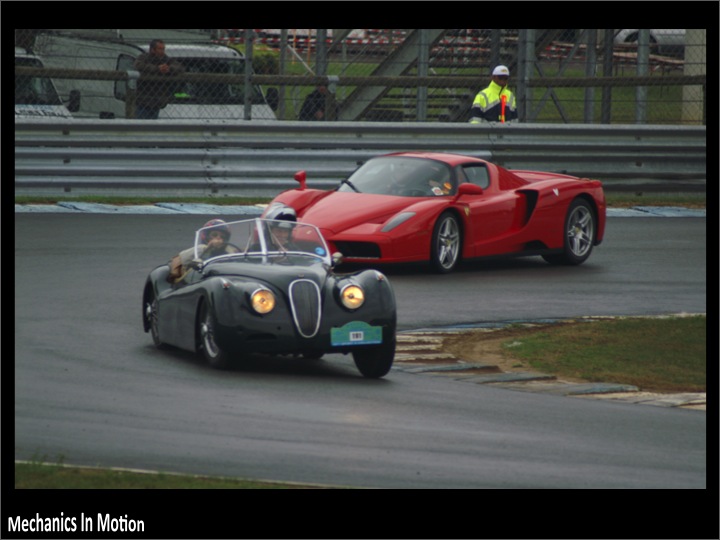 (Une Jaguar XK 120 roadster devant une Enzo. Le symbole de la richesse du Sport & Collection)