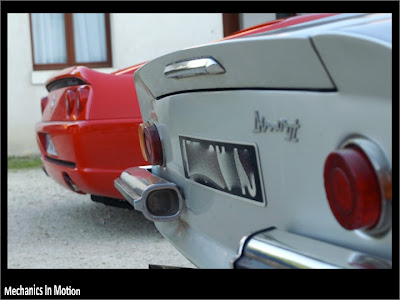 (V6 de 2,4l et 204ch pour la Dino. V8 de 3,5l et 380ch pour la F355. Deux époques, deux beautés intemporelles)