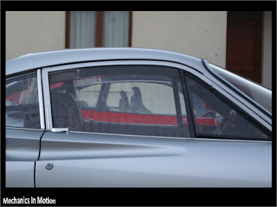 Ferrari 250 GTE dans un gris aux reflets bleus dans un état impeccable. Cette GT 2+2 possède un V12 de 2953 cm3 et développe 240 chevaux. Un petit moment d’émotion. Malheureusement une panne d’appareil photo m’a obligé à utilisé le secours beaucoup moins performant…